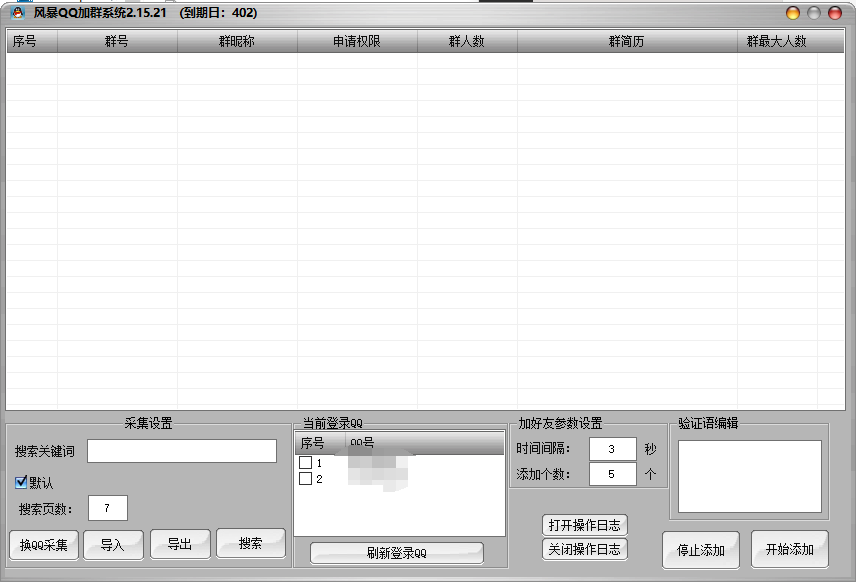 QQ群采集软件支持多账号采集、多关键词同时采集、QQ群采集导出、条件过滤过滤审核群,无须审核群,回答问题,回答问题审核群,群人数过滤软件下载地址:https://www.123912.com/s/OS...