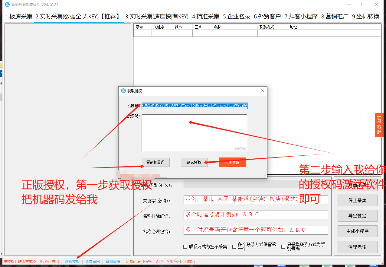 2、数据来源百度地图、高德地图、360地图、腾讯地图、Google地图、必应地图3、可导出Excel、通讯录VCF4、可同时采集多个关键字(行业)5、可同时采集指定省份下多个城市6、可同时指定多个包含、排除关键词7、采集后可打开地图查看详情8、大数据采集支持地图KEY池管理避免采集受限9、官网无KEY直采高效、数据多