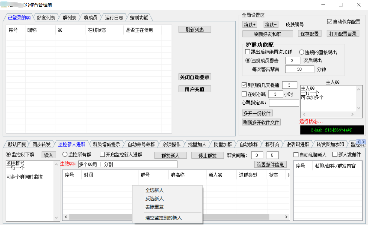 2.1 可以群发消息,群发可自定义间隔时间,可以自定义群发多少人数等待多少分钟等