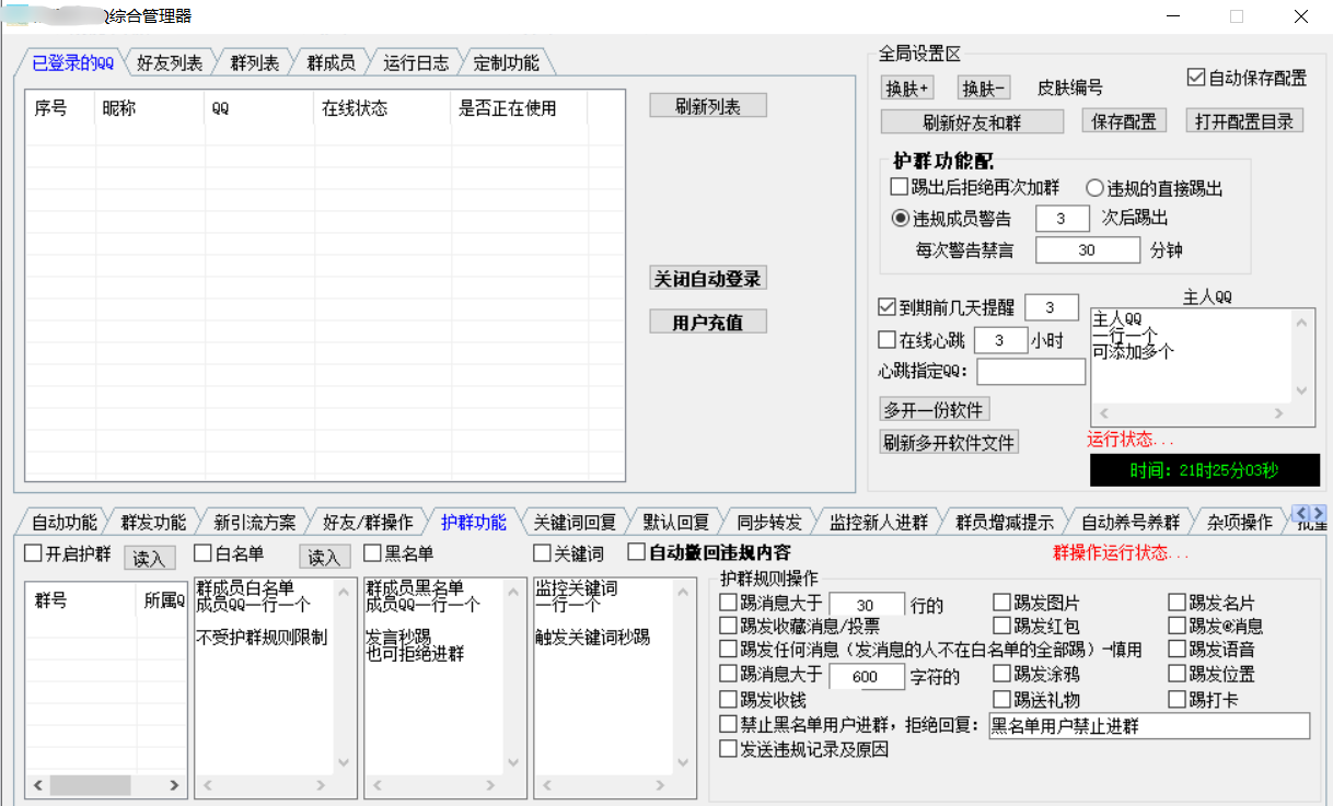 4.2 支持白名单(在白名单的不受护群规则限制),支持黑名单(在黑名单的不管发的什么内容都触发护群规则)