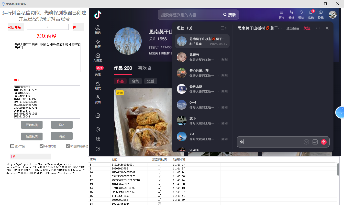 无限私信其实就是发蓝v商家是无限,发陌生人只能单号200+左右,新号也可以发,陌生人可以发三条内容,十个号就是2000+/当然你有能力号越多越好然后软件我们也可以无限留痕,至于跑关注能跑多少我们没具体...